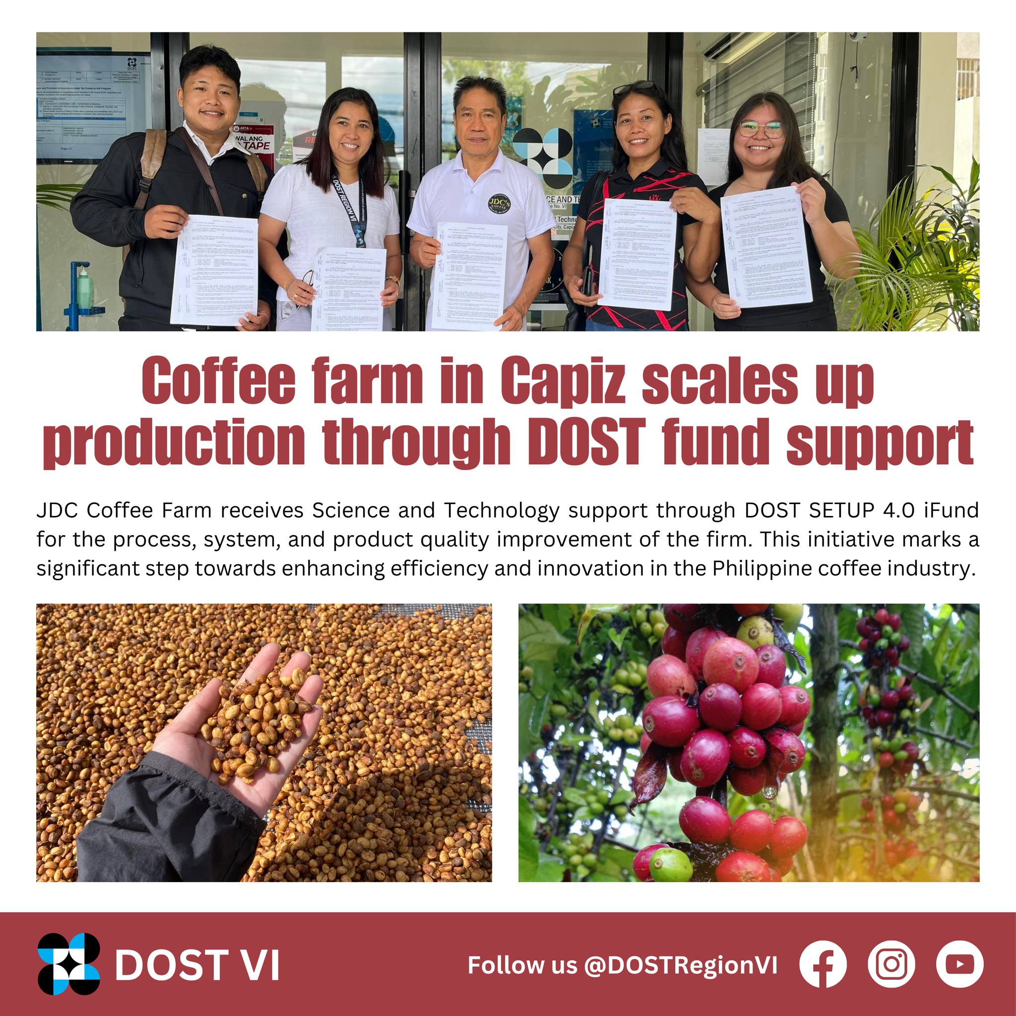 Roxas City- JDC Coffee Farm, a flourishing player in the Philippine coffee industry, has recently been approved for the Department of Science and Technology’s (DOST) SETUP 4.0 iFund. This funding aims to enhance the farm’s processes, systems, and product quality through the adoption of science and technology-related interventions.