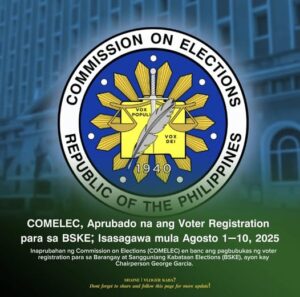 Isasagawa ang rehistrasyon mula Agosto 1 hanggang Agosto 10, 2025, bilang paghahanda sa nakatakdang halalan sa Disyembre 1, 2025.