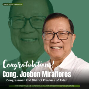 Ibajay, Aklan-Isang malaking karangalan ang natanggap ni Second District Congressman Florencio โ€œJoebenโ€ Miraflores matapos siyang italaga bilang Vice Chairperson ng Committee on Tourism sa House of Representatives. Si Miraflores ay kasalukuyangย  unang termino sa nnasabing posisyon.
