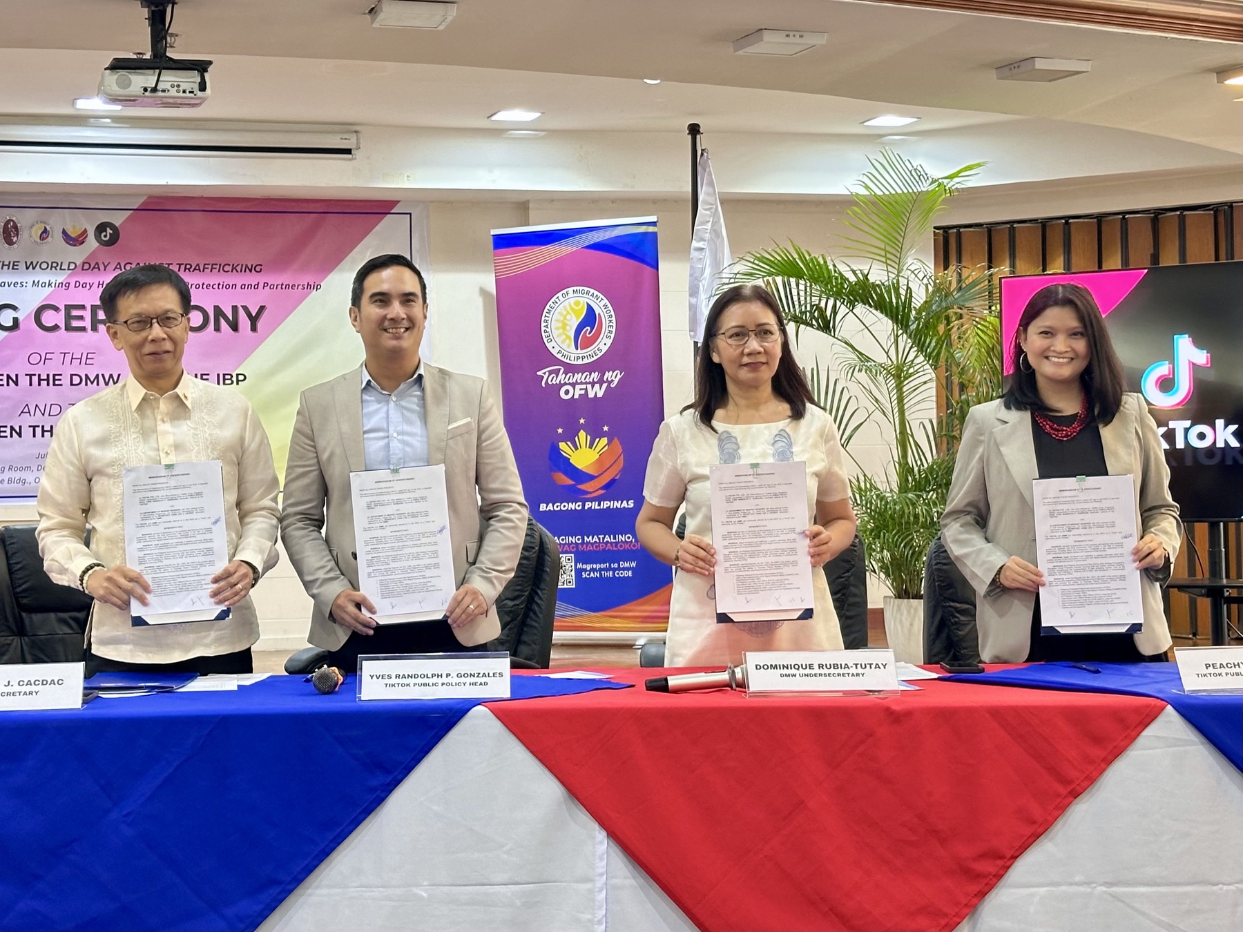 The Department of Migrant Workers (DMW) partnered with TikTok Pte. Ltd, the world’s leading short-form video platform, to further enhance digital safeguard and protection of overseas Filipino workers (OFWs) against illegal recruitment and online job scams.