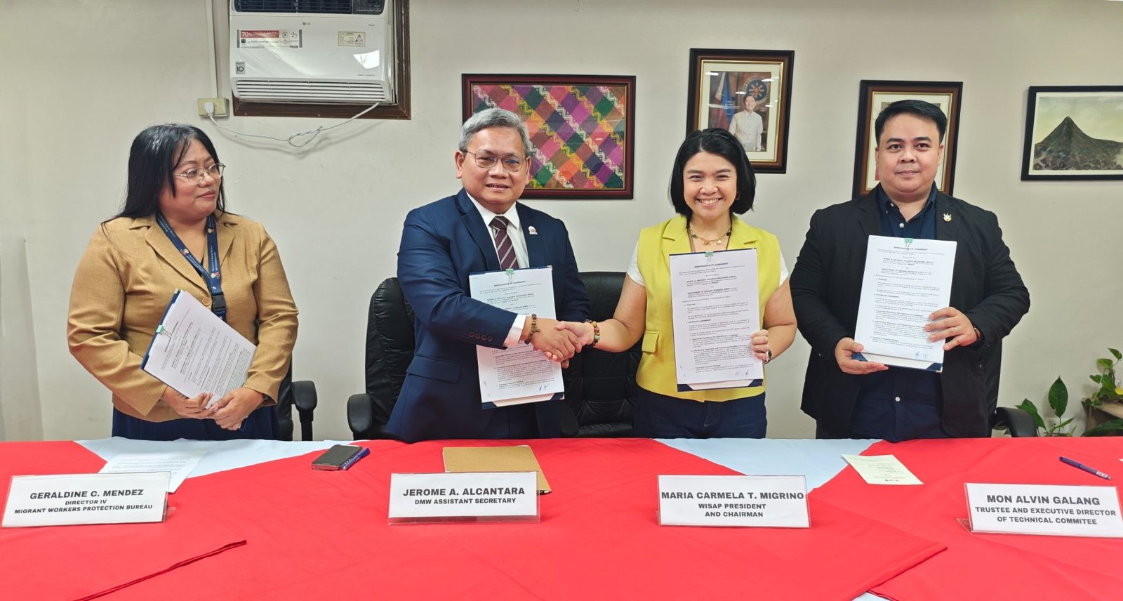 Under the agreement, the DMW and WiSAP will work together on knowledge-sharing on cybersecurity, information campaigns, training and capacity building, and empowering women OFWs through WiSAP membership.