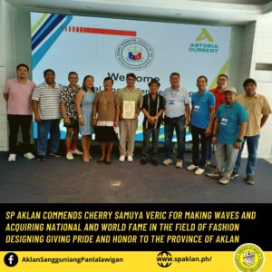The 18th Sangguniang Panlalawigan of Aklan, presided by Provincial Vice Governor and Regular Presiding Officer, Atty. Reynaldo M. Quimpo, commended CHERRY SAMUYA VERIC for making waves in acquiring national and world fame in the field of Fashion Designing during its 94th Regular Session on May 3, 2021.
