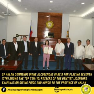 The Sangguniang Panlalawigan of Aklan has given honor and recognition to Diane Alcobendas Garcia, an Aklanon who came in 7th place in the last Dentist Licensure Examination.