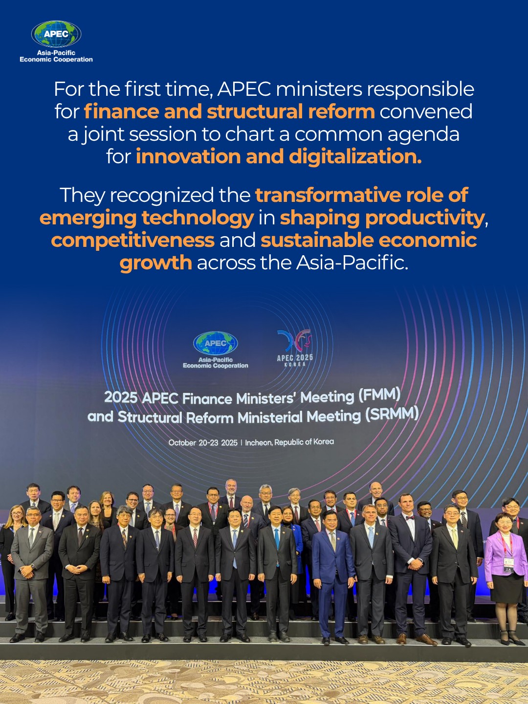 South Korea- APEC finance ministers are gathered in Incheon, Republic of Korea, to shape coordinated responses to fiscal challenges and digital transformation, focusing on the global economic outlook, sustainable public finances and innovation in financial systems.