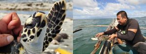 The sea turtle was reportedly kept in custody for nearly two years, but also taken care of and fed with fish by a resident of Barangay Agtatacay Norte, Sapian, Capiz. A physical examination of the Hawksbill sea turtle was done by PA II Bolante, and the wildlife was found to be in good condition. The sea turtle was accidentally captured by a fish trap locally known asย taba, designed to catch shrimps, crabs, and other crustaceans.