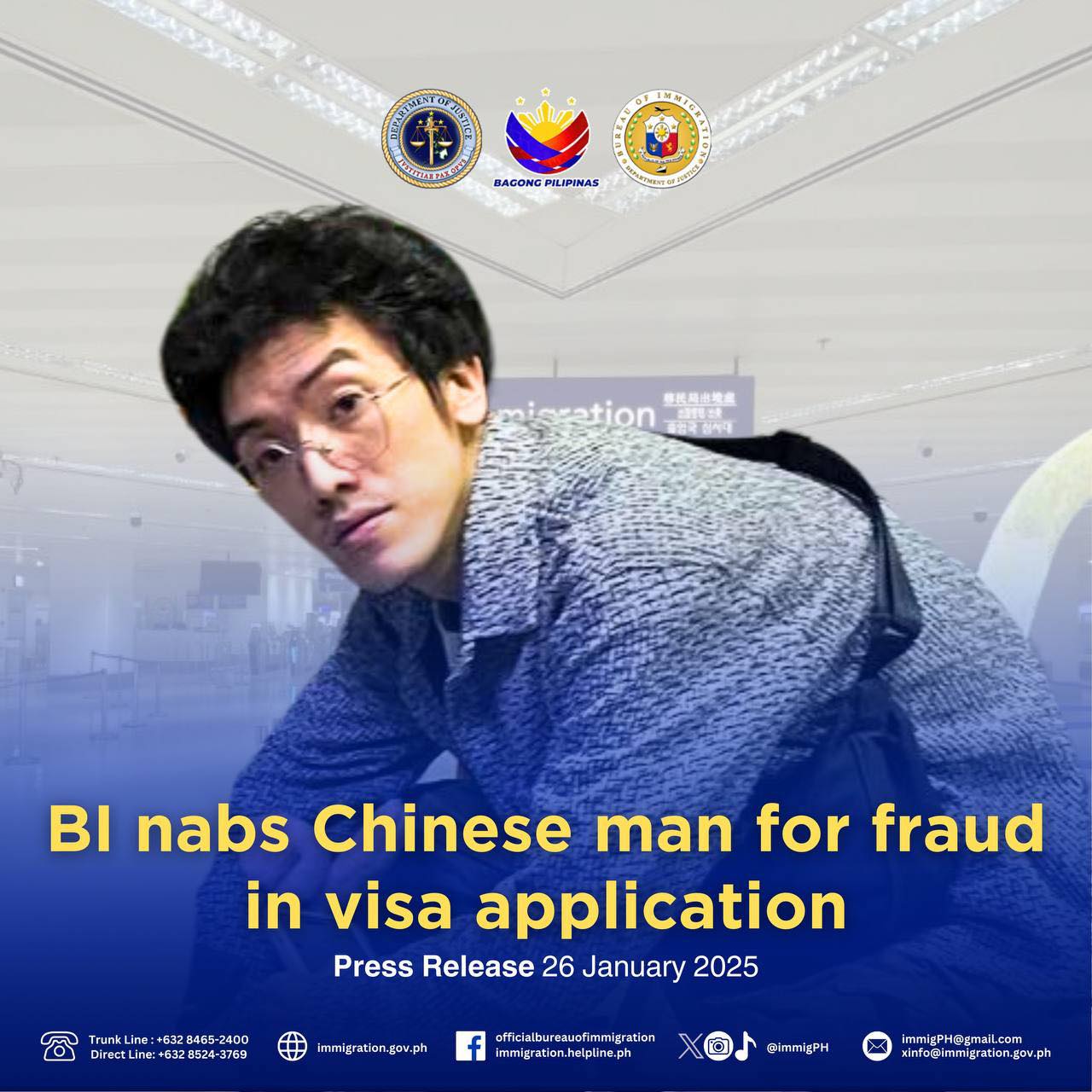 In a statement, Immigration Commissioner Joel Anthony Viado identified the passenger 23-year-old Li Xuanjun, who was intercepted at the immigration departure area of the NAIA terminal 1 last Jan. 22 before he could board a Philippine Airlines flight to Quanzhou, China.