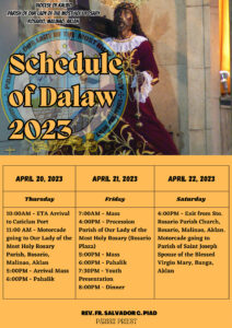 Dadalhin rin ang Poon sa Poblacion, Banga sa Abril 22 samantalang sa Abril 23 ay dadalhin rin ito sa bayan ng New Washington.