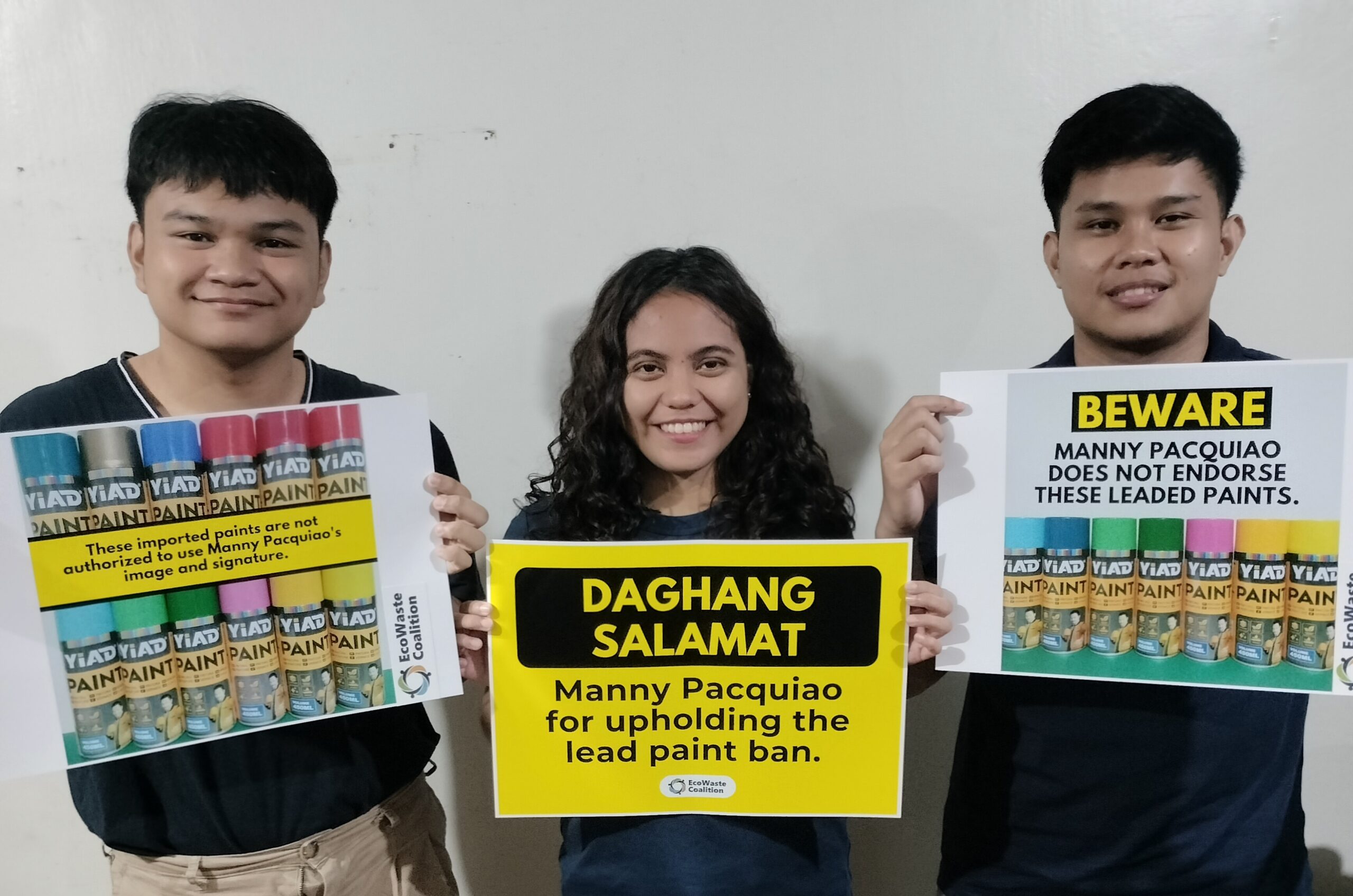Quezon City- Boxing icon and former Senator Manny Pacquiao has distanced himself from imported lead-containing paints bearing his image and signature — without his authorization — as uncovered by the EcoWaste Coalition during its recent market investigation.