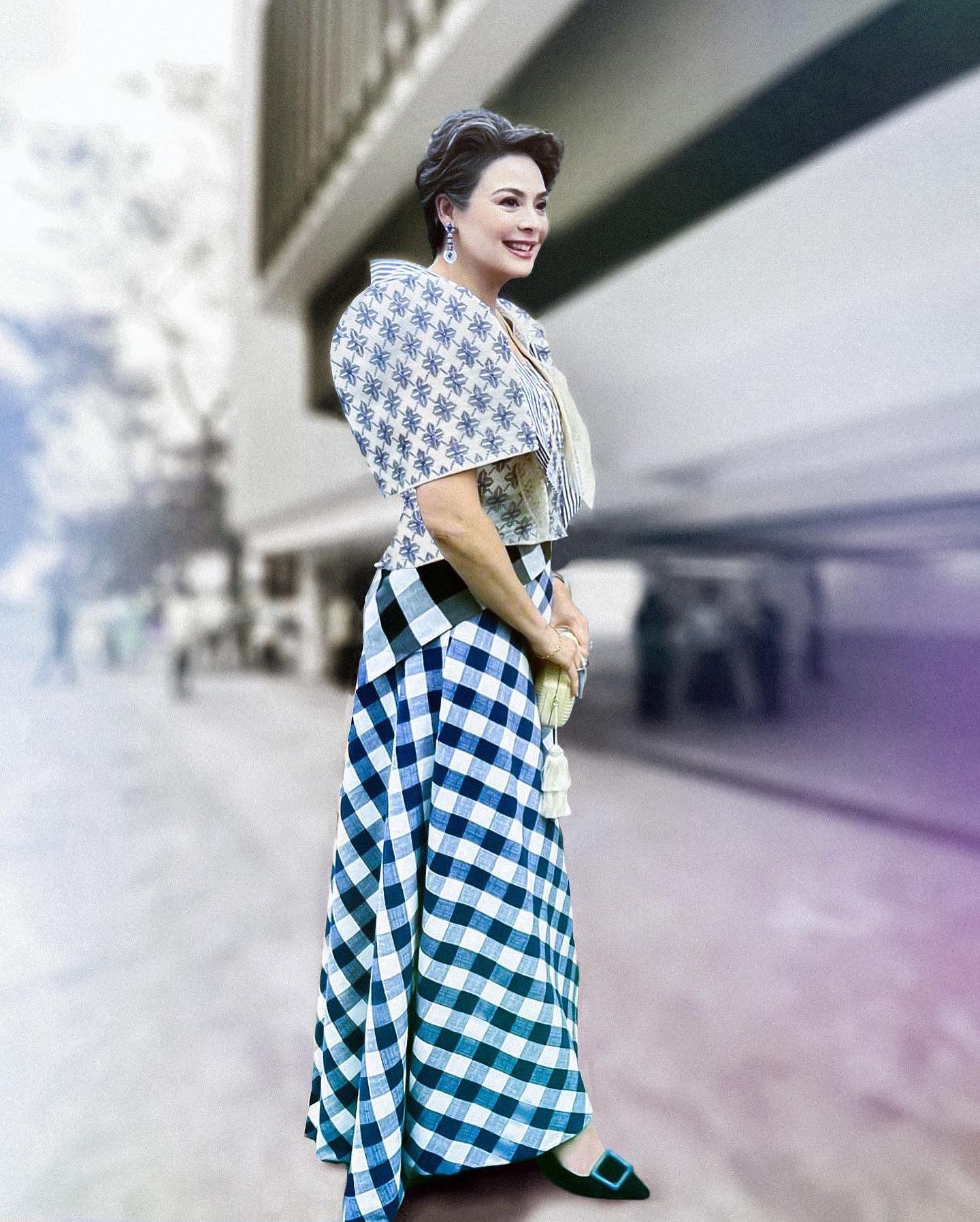 “This time Piña suksok from Balete! Gorgeous Dawn Zulueta~Lagdameo wearing a handwoven Piña suksok or “sinuksok” balintawak paired with gingham skirt, complete with alampay and tapios,” he said in his Facebook post.