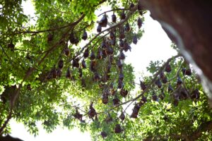 On estimate, the colony numbers to over a thousand and has established a roost among the areaβs fruit trees. This behavior could be influenced by seasonal availability of food resources, changes in local habitat conditions, or disturbances in their usual roosting areas.