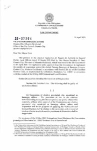 The clarification comes after a formal request filed by the Ozamiz City Council on March 12, 2025, seeking clearance to implement Vergara’s suspension amid the election season.