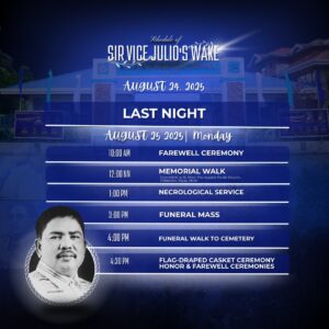 Sa araw na iyon, dadalhin ang labi ni vice mayor sa bahay nito sa August 17-22. Dadalhin naman sa Melchor Memorial School Inc sa Ibajay para magbigay pugay sa eskuwelahan na kanilang pinahusay magmula August 22-25, 2025.
