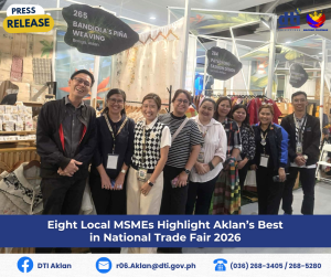 Mandaluyong City- Eight (8) Aklanon micro, small, and medium enterprises (MSMEs) are representing the province of Aklan in this year’s DTI-Bagong Pilipinas National Trade Fair being held at the Megatrade Halls1-3, Level 5, Mega B, SM Megamall, Mandaluyong City, from February 18-22, 2026.