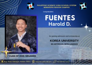 Kinilala ang mag aaral na si Harold D. Fuentes ngย class of 2025: Siklawan.