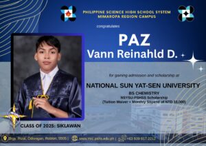 “Two bright stars from PSHS-MRC are now ready to shine on the global stage! Congratulations to our outstanding scholars who have been admitted to universities abroad. Your hard work, perseverance, and passion for learning have brought you to this amazing milestoneโand we couldnโt be prouder. This achievement is more than just a personal success; itโs a proud moment for the entire PSHS-MRC community. As you take this bold step toward a future full of opportunities, know that your Pisay family is cheering you on every step of the way,” pnhayag ng nasabing eskuwelahan sa kanilang Facebook page.