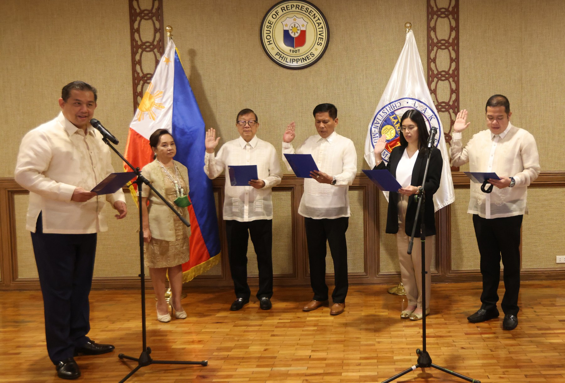 In the photo released by the House of Representatives Monday, no less than House Speaker Martin Romualdez personally took the oath for the father and son.