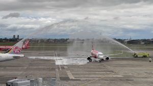 The inaugural Kuala Lumpur-Cebu flight, which arrived XX ahead of schedule, was welcomed with a traditional water cannon salute at MCIA.