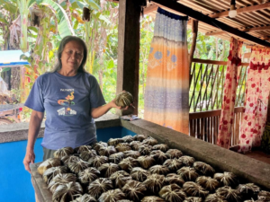 Virginia inherited the skills to make binagol, a popular delicacy from Leyte made from root crops like cassava and taro. Since the 1980s, she has mastered this craft, which has become her main way of supporting her family. “Making binagol requires patience, effort, and time, just like achieving our dreams,” Virginia shared.