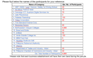 This year, around 20 businesses are joining the revelry. The first prize of this year’s competition will be P30,000; the second prize will be P20,000 and the third P10,000. A P5,000 consolation prize is also at stake.