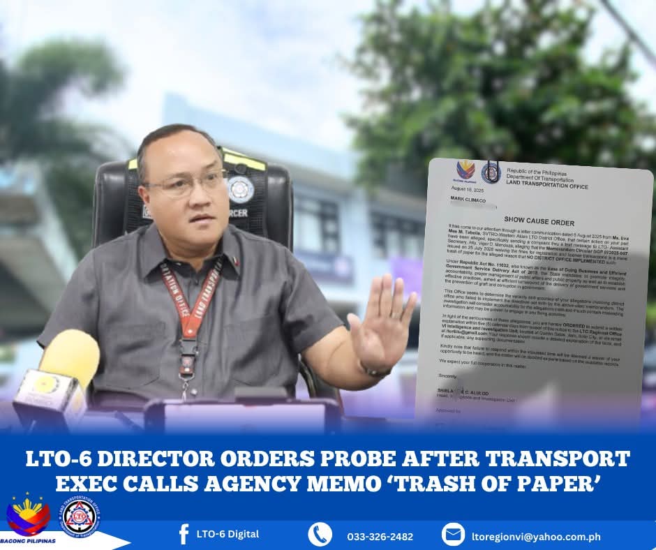 Latest News LTO -6 director orders probe against Aklanon transport leader Published 8 months ago on August 19, 2025 By newsrepublic43@gmail.com