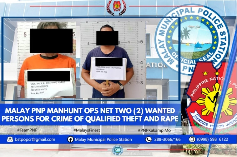 The Malay PNP under the leadership of PLTCOL DON DICKSIE L DE DIOS, Chief of Police, nabbed two (2) Wanted Persons during two separate manhunt operations at Bgy. Cogon, Malinao, Aklan and Bgy. Kabulihan, Malay, Aklan this week.