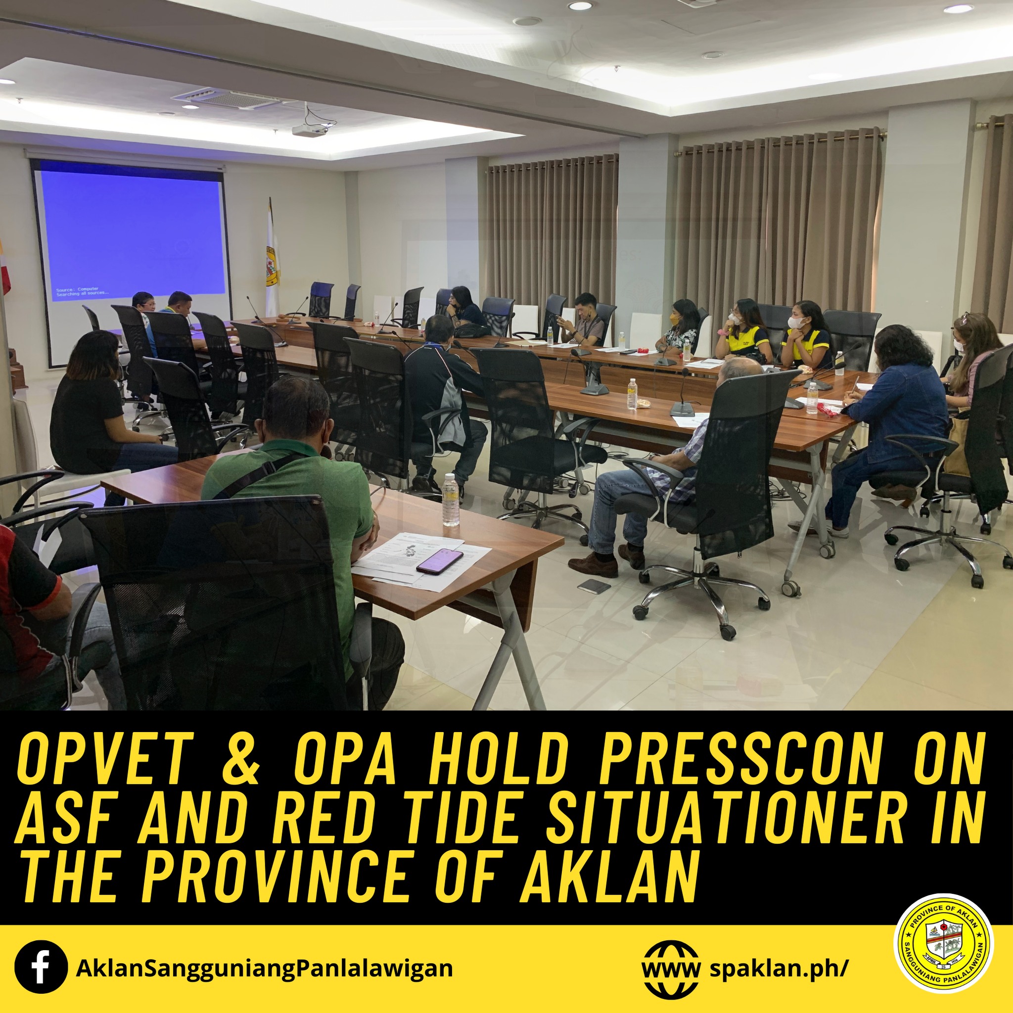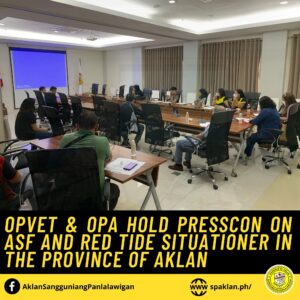 On November 17, 2022 at the SP Building East and West Conference Room, the Office of the Provincial Veterinarian (OPVET) and the Office of the Provincial Agriculturist (OPA) under Aklan Governor Jose Enrique M. Miraflores conducted a press conference on the current status of African Swine Fever (ASF) and Red Tide threats in the Province of Aklan.