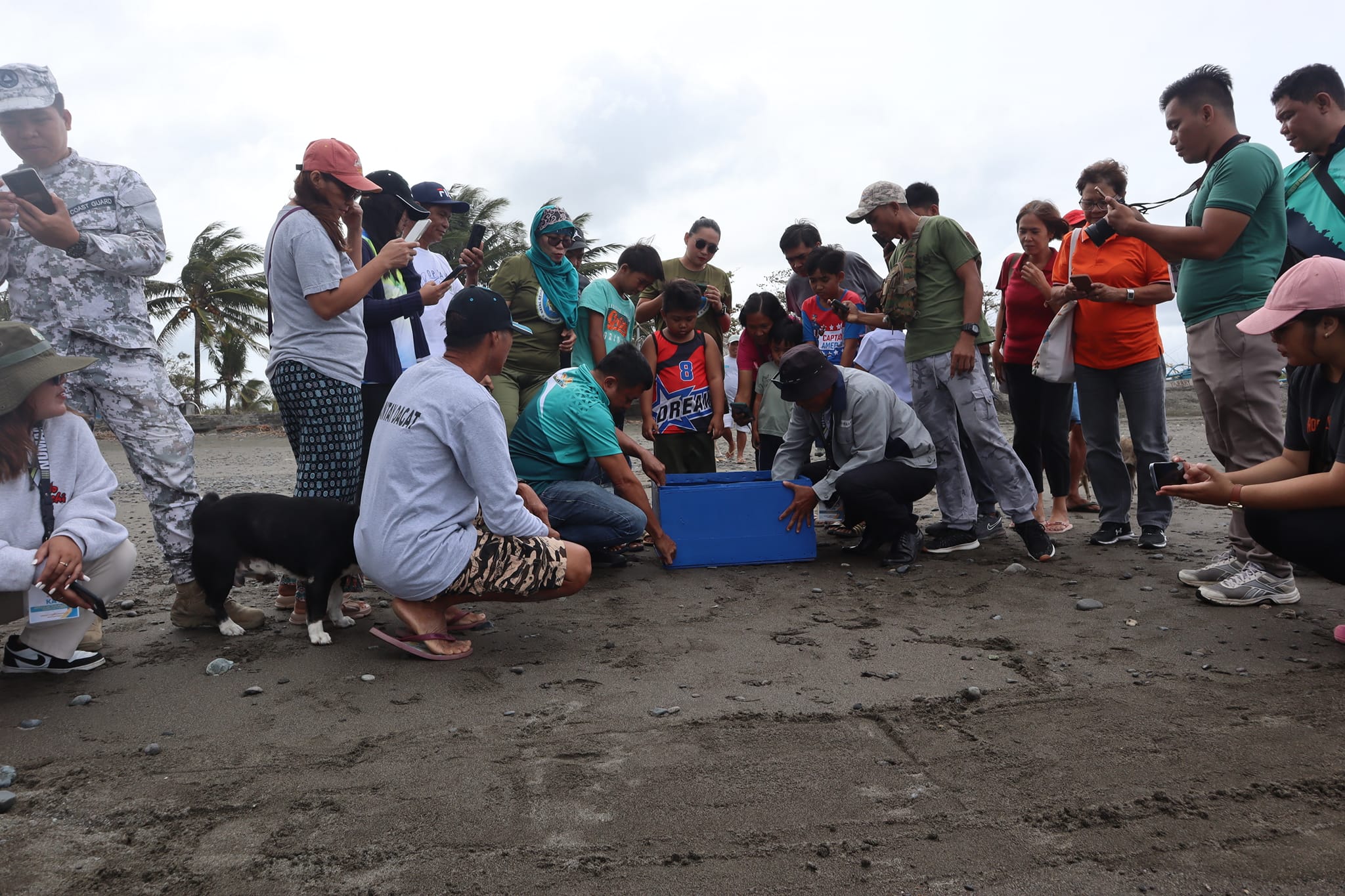 Jeserel T. Templonuevo, Municipal Mayor of Numancia led the release together with the Numancia Agri-Fishery Numancia Agri-Fishery Sea Turtle Conservation and Protection Unit, Judy A. Gonzales-Municipal Agriculturist, AT-Fishery Designate John L. Alcazarin, staff from OMA, Bantay Dagat officers, local fisherfolks, and the Barangay Council and personnel of Brgy. Camanci Norte.