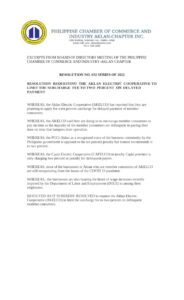 The resolution stemmed from the announcement of AKELCO recently that it will soon charge a ten percent penalty to delinquent member consumers. The AKELCO claimed that more than half of overall member consumers are not paying on time which hampers their operation.