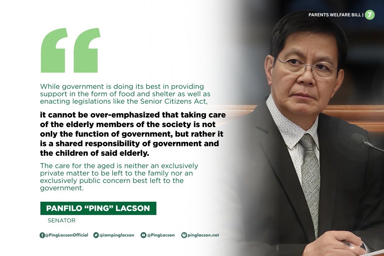 Some are shaped by decades of abuse, estrangement, or unresolved trauma. Forcing care through coercion may re-traumatize people or worsen toxic family dynamics. Instead of relying on courts to impose morality, we must build a system where caring for elders is a shared societal responsibility, with the State taking the lead, not just acting as the enforcer. Lacson’s proposal highlights an ugly reality that we’ve swept under the rug— our elderly is suffering, and too often, abandoned. He deserves credit for attempting to remedy it through legislation.