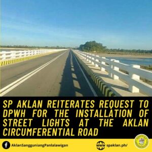 “This is an urgent need for the immediate installation of street lights for the safety of the general public and to prevent lawlessness in the dark portions of the Aklan Circumferential Road,” Solidum said.