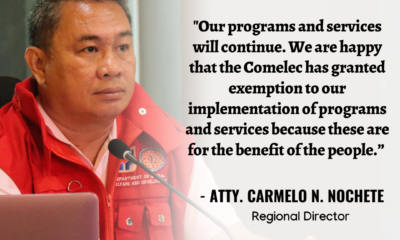 The DSWD Field Office VI assured residents in Western Visayas that its programs will proceed amid election period. This after the Commission on Elections approved the...