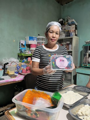 She also acquired a second-hand motorcycle from her loan, which she utilizes to deliver her pastillas to customers.