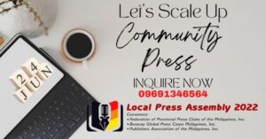 Also invited to grace and speak during the whole-day media assembly are Director General Charito “Ching” B. Plaza of the Philippine Economic Zone Authority (PEZA); and Dr. Cesar Chavez, vice-president of Manila Broadcasting Company (MBC).