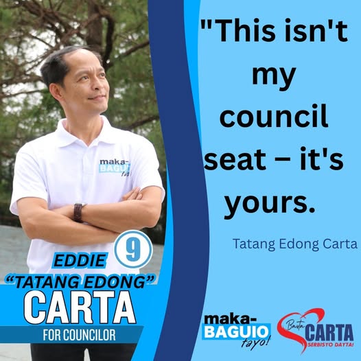 The former broadcaster turned reform candidate under Team Maka Baguio Tayo has spent 28 years in the journalism field reporting anomalies, and other contraversies. His campaign slogan “Basta Carta, Serbisyo Dayta” reflects his service-oriented approach to accountable leadership.