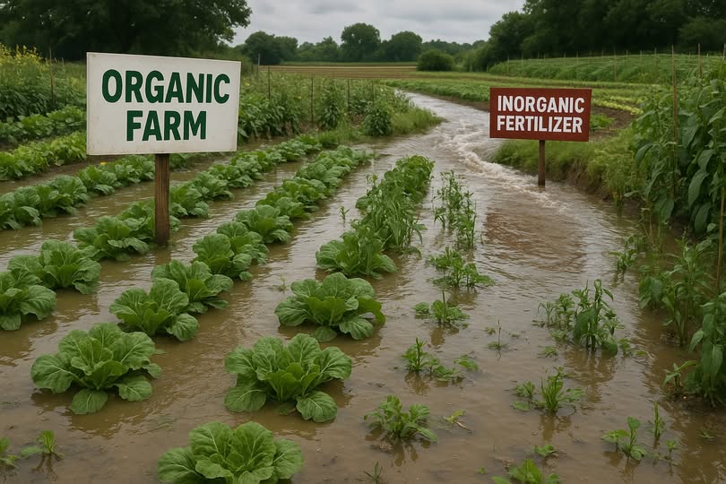 Bakit? Dahil ang prinsipyo ng organic farming ay ang pag-iwas sa anumang uri ng kemikal na artipisyal—tulad ng synthetic fertilizers, pesticides, at herbicides. Kapag ang tubig-baha ay tumawid mula sa isang inorganic farm papunta sa iyong organic farm, malaki ang posibilidad na may dalang residue ng mga kemikal na iyon ang tubig.