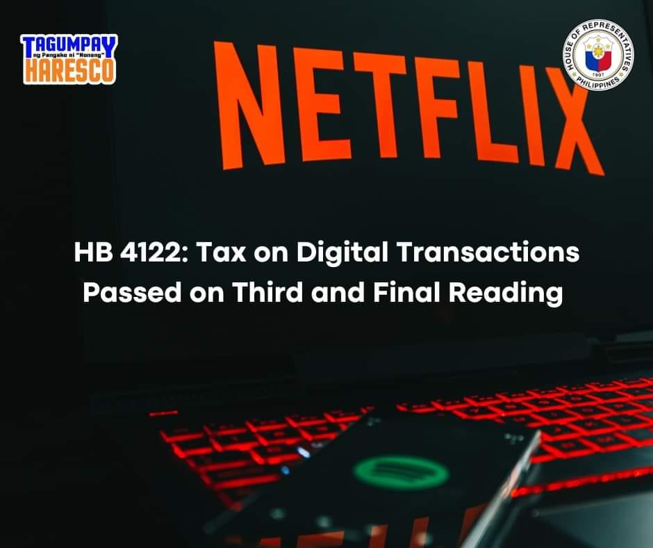 Two weeks after the resumption of session, HB 4122 or AN ACT IMPOSING VALUE-ADDED TAX ON DIGITAL TRANSACTIONS IN THE PHILIPPINES, AMENDING FOR THE PURPOSE SECTIONS 105, 108, 109, 110, 113, 114, 115, 236, AND 288 AND ADDING A NEW SECTION 105-A OF THE NATIONAL INTERNAL REVENUE CODE OF 1997, AS AMENDED, co-authored by our very own Cong. Teodorico “Nonong” T. Haresco passed the third and final reading.