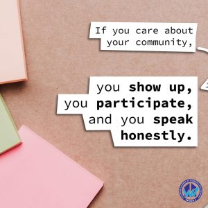 “If you care about your community, you show up, you participate, and you speak honestly.”